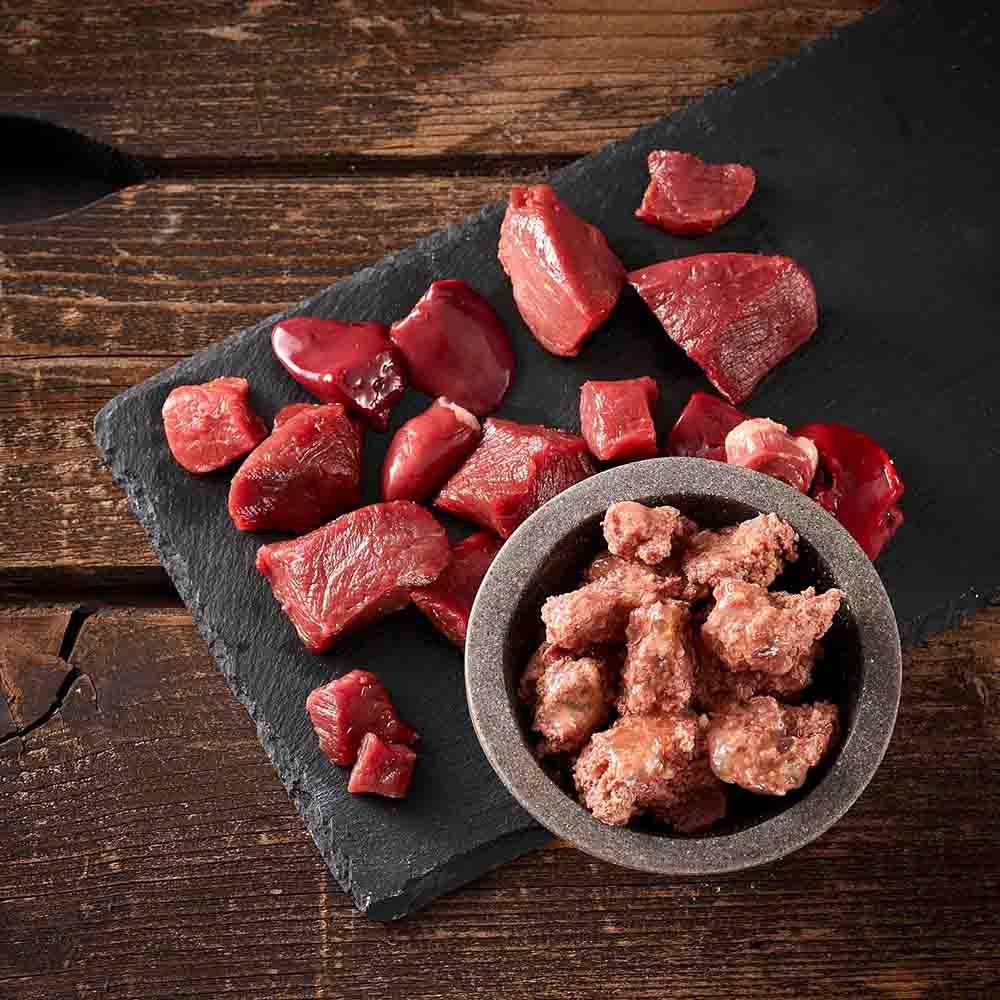 • Innehåller kött, mage, lunga, hjärta och lever från häst