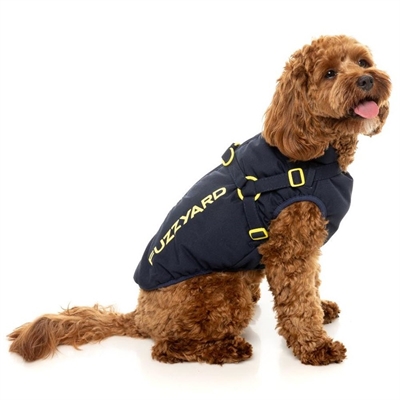 Fuzzyard Designer Hundjacka Med Sele Modell Horizon Navy