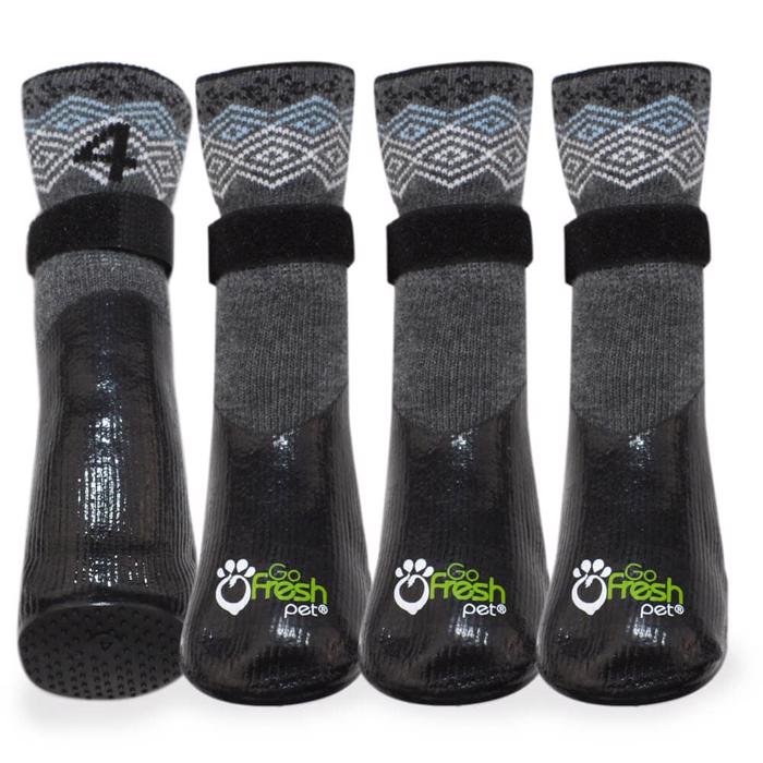 Go Fresh Pet All-terrain hundskor har en flexibel botten med ultra grepp. Lätt att ta på eftersom hundstöveln sitter som en strumpa. Kardborreband för en säker passform runt benen. Perfekt för alla våta ytor. Ta med din hund till sjön, stranden, berget eller parken. Är också riktigt bra för seniorhunden som inte står stadigt på hala golv och om du har en tass som har skadats.