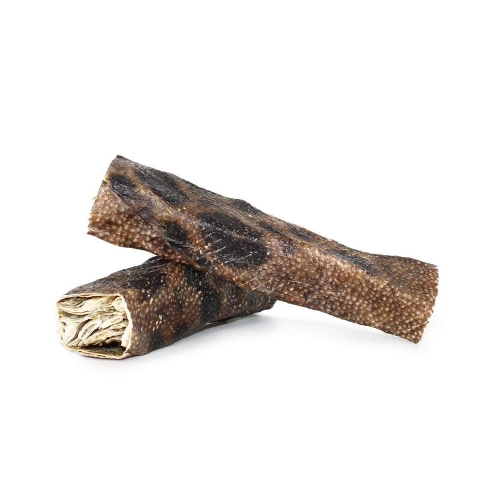 Läckra fettsnåla och spannmålsfria tuggpinnar av havskatt. En stick av äkta färskfångad havskatt. Handgjord