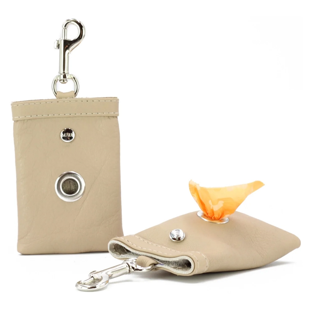 Denna fina påshållare är gjord av mjukt nappaläder. Hållaren har kardborrestängning för påfyllning av de små standardpåsarna.