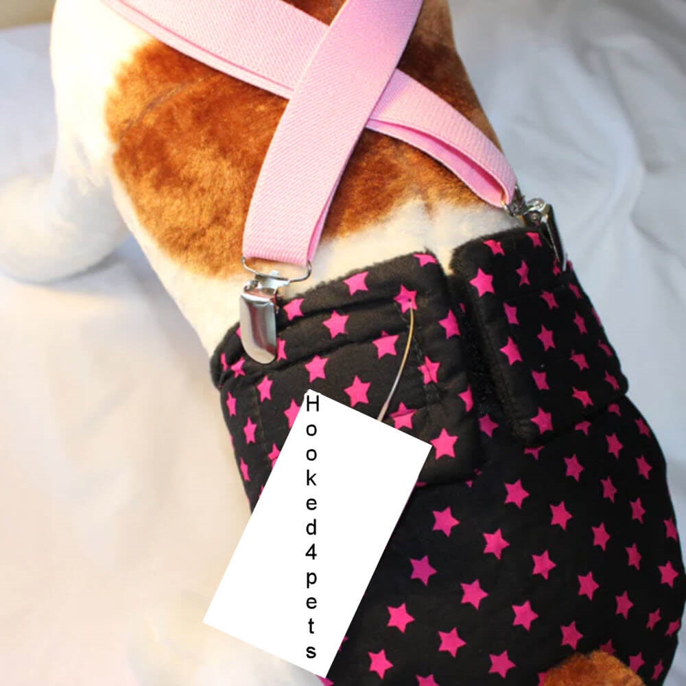 Justerbar och handgjord sele för löptidsbyxorna. Hjälper hunden så att byxorna inte faller av