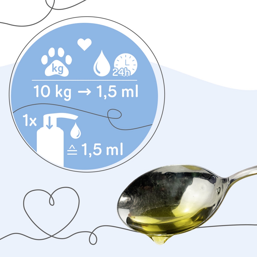 Med Hokamix Skin & Shine kompletterar man med de essentiella fettsyrorna i rätt förhållande och tack vare den goda kvaliteten kan fodertillskottet bidra till att hunden undviker dålig mage. Tack vare den speciella aluminiumförpackningen med en dispenserpump kommer produkten inte i kontakt med solljus och syre. Därmed bibehålls effekten av dessa goda fettsyror under lång tid.