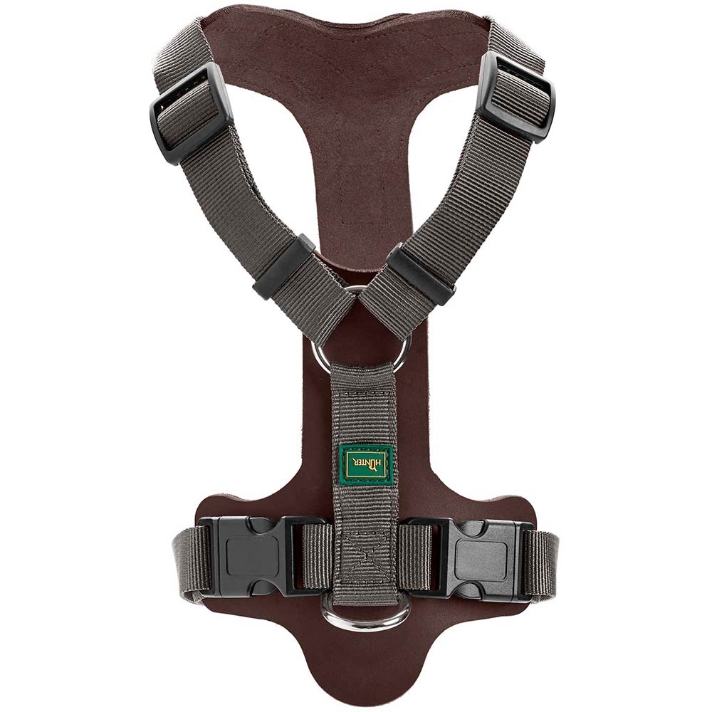 En smart och ergonomisk designerhundsele från Hunter, som har en bra passform. Selen är av oxläder och polyester.