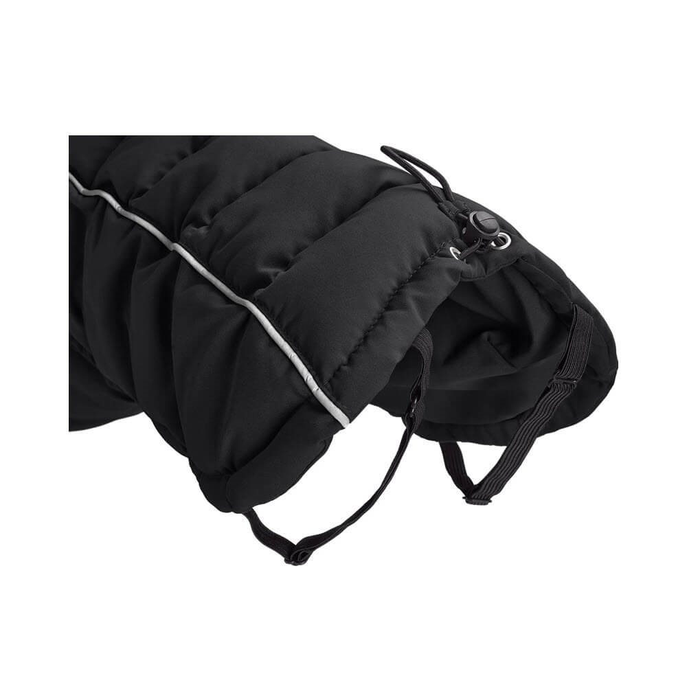 På varje sida av jackan löper ett reflexband hela vägen ner till bakänden. Jackan har två justerbara benremmar.