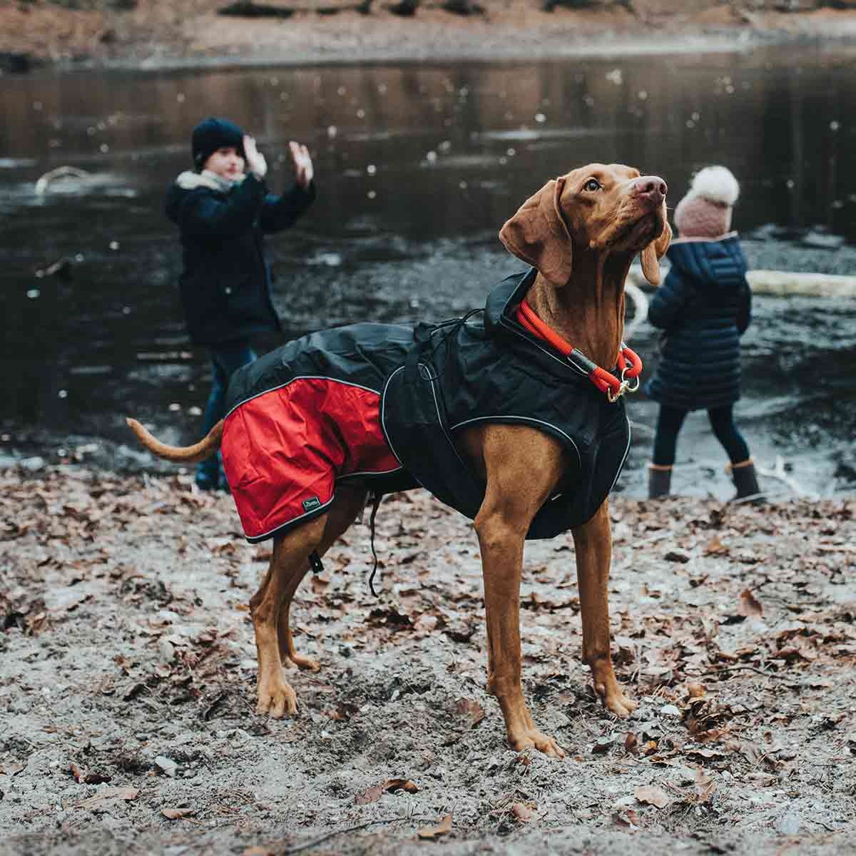 Hunter hundjacka i svart och röd, vatten- och vindtät, en mångsidigt justerbar jacka