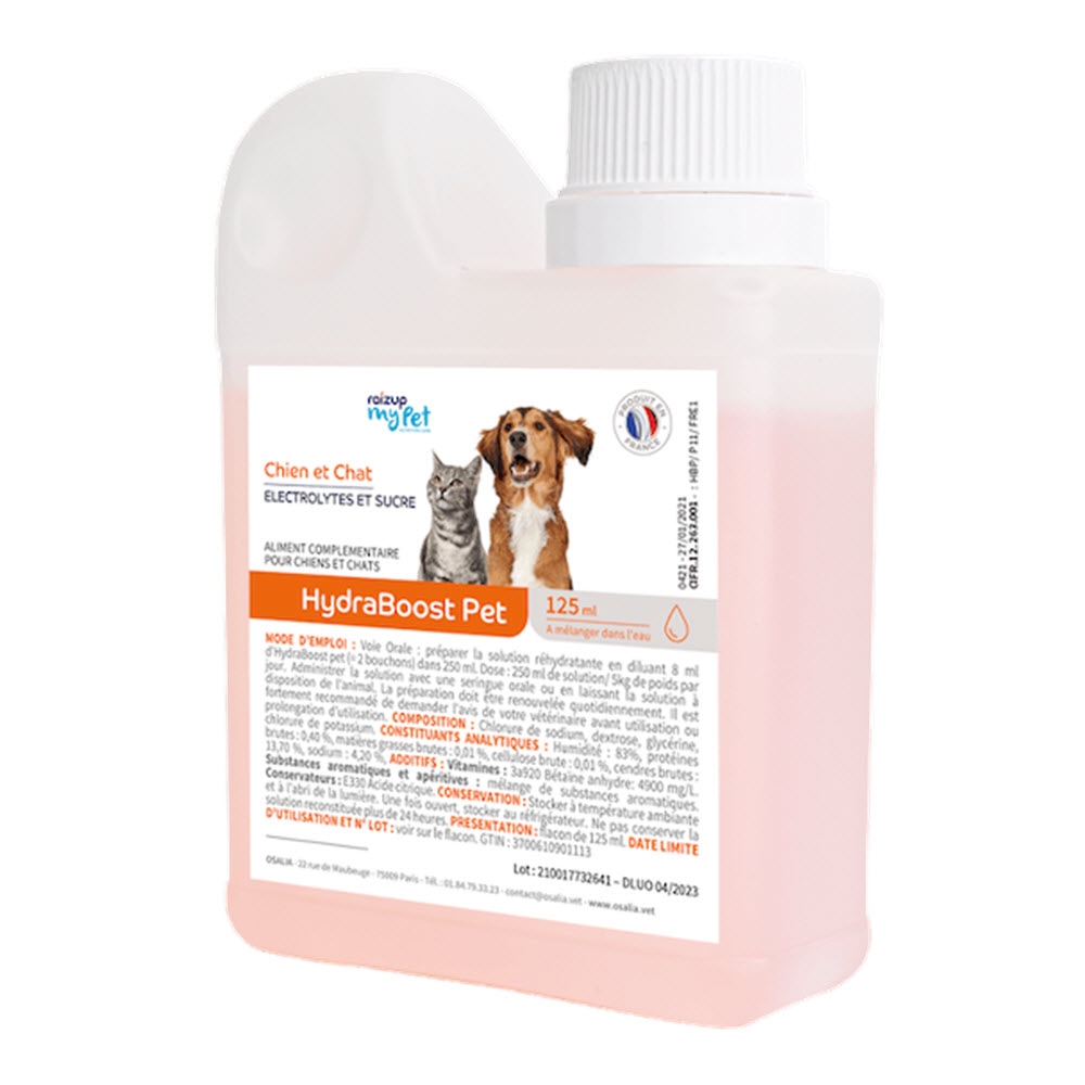 HYDRABOOST Pet är tillverkat (i anpassade portioner och koncentrationer) för att ge en snabb ökning av vätskeintaget och därmed snabbare återställa vätske- och elektrolytbalansen under perioder av uttorkning.