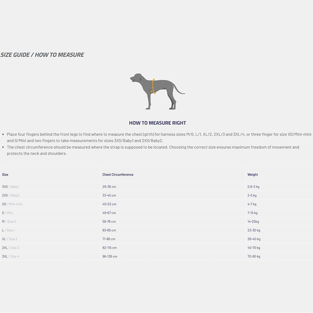 Det är viktigt att mäta din hund noggrant för att välja rätt selestorlek. Bröstomkretsen ska mätas där remmen ska sitta.