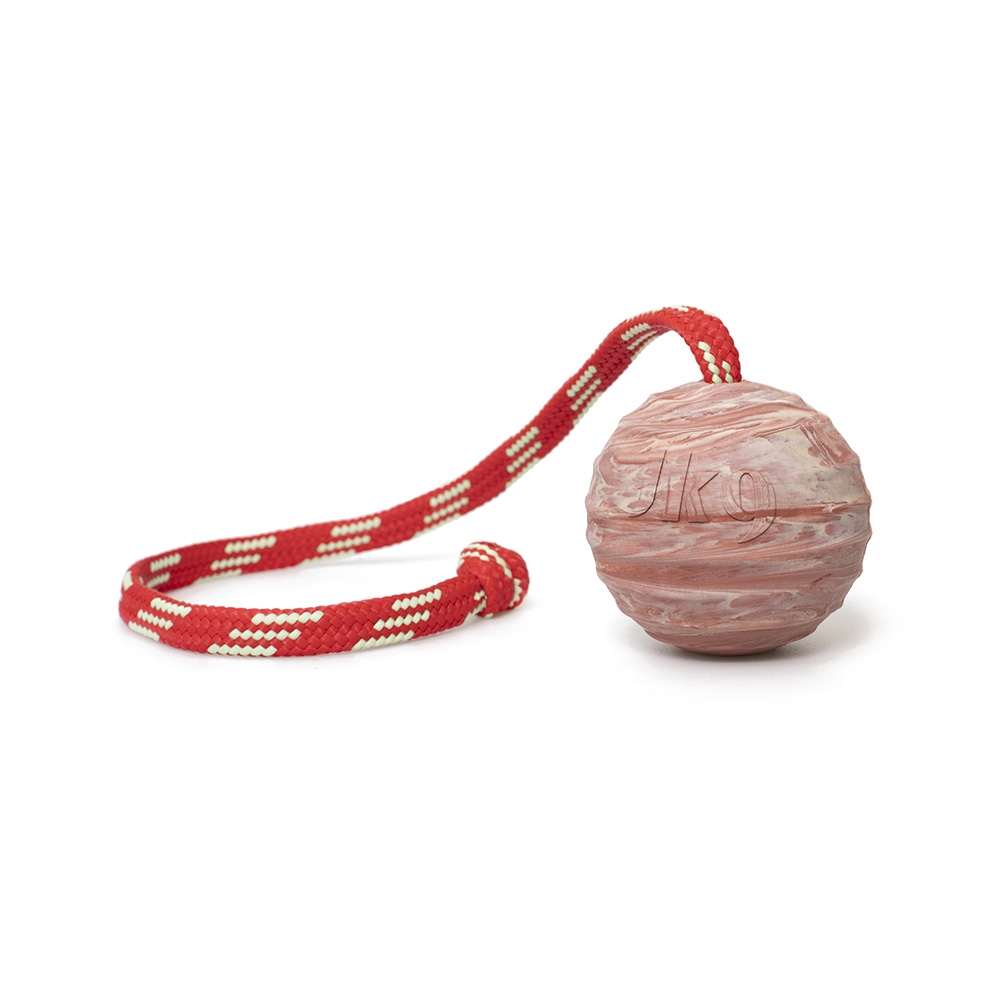 Slitstark boll i naturlig gummi, med starkt rep - perfekt för lek, drag och apport.