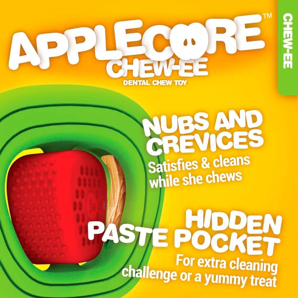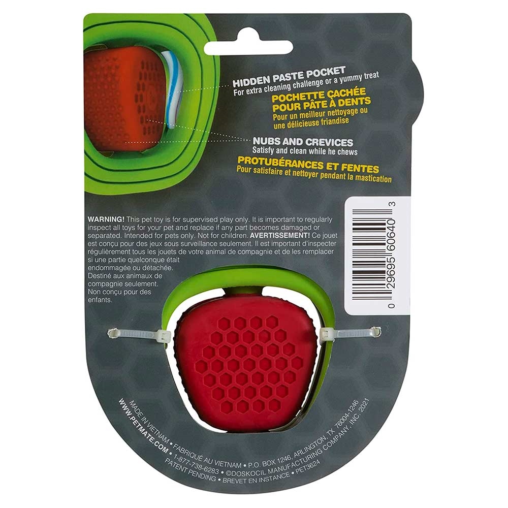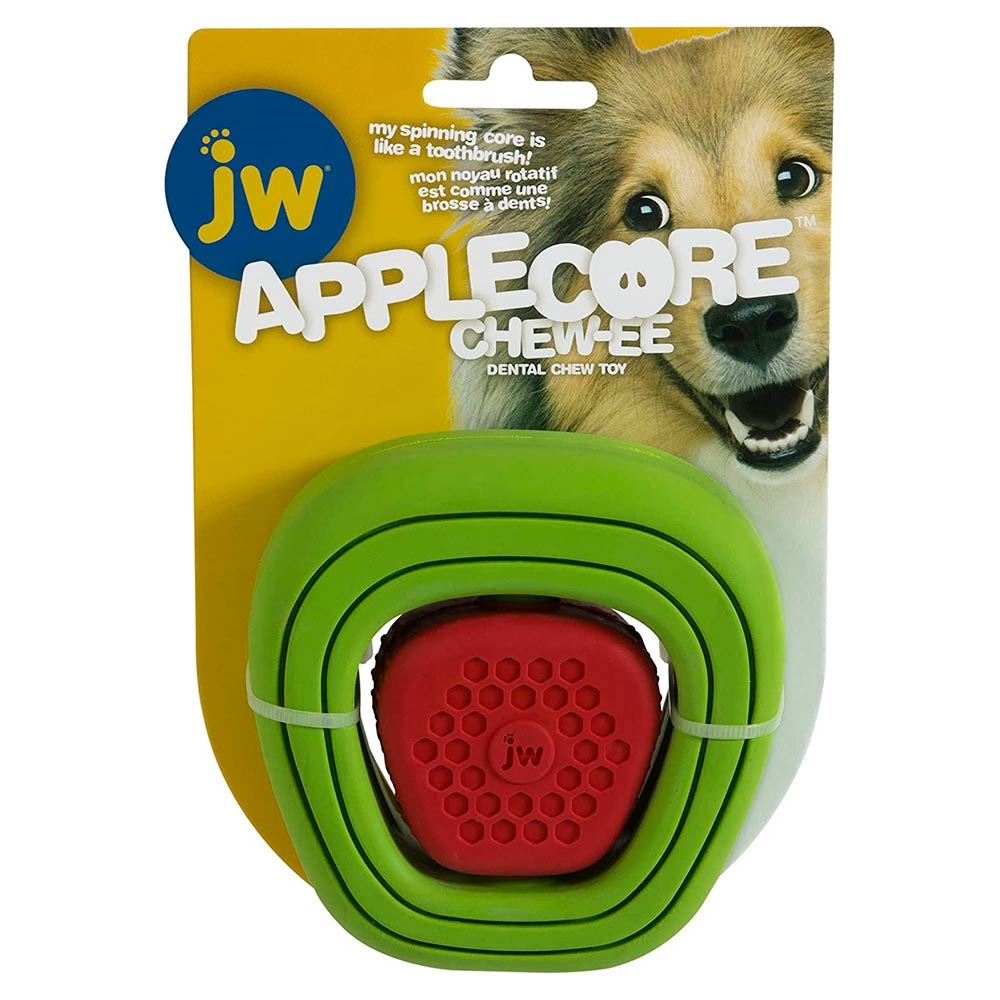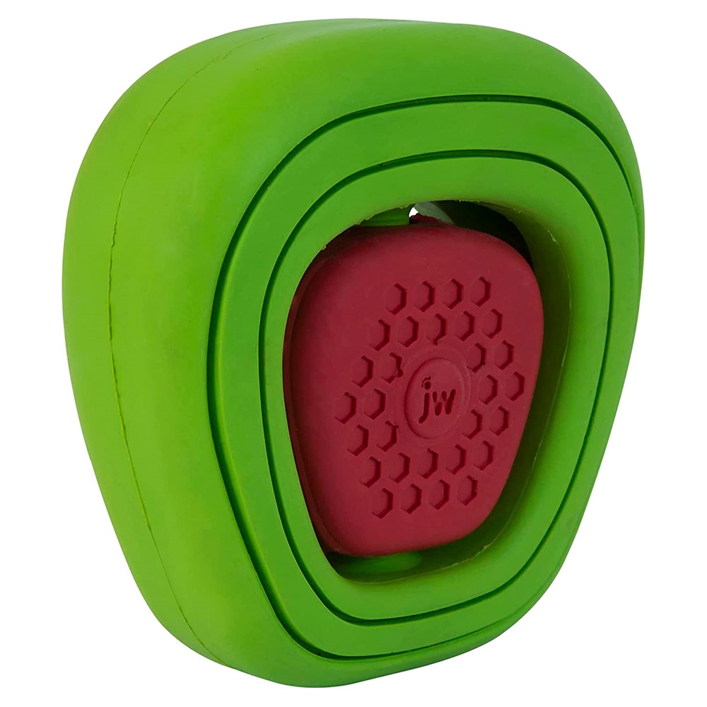 Rolig leksak från JW, som rengör hundens tänder och tandkött medan hunden tuggar på den. Leksaken är designad för att rengöra medan hunden tuggar. Leksaken som ska föreställa ett äpple är täckt av knoppar, sprickor och räfflor som masserar hundens tandkött och tillfredsställer din hunds tugginstinkt.