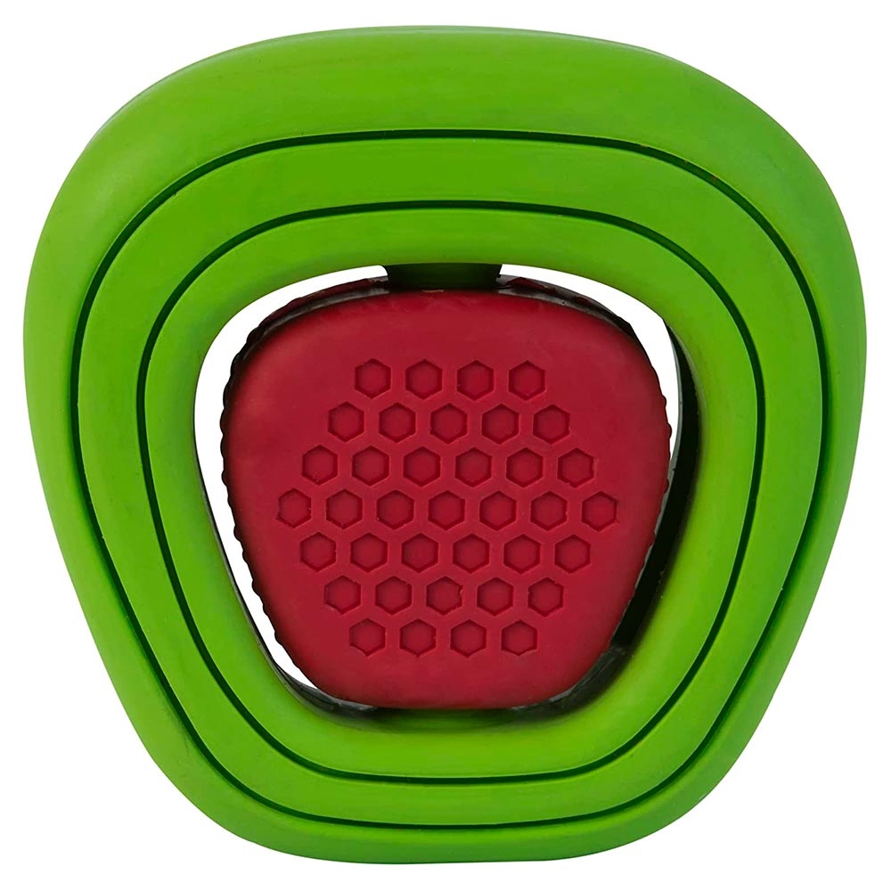 De tunna räfflorna runt leksaken kan fyllas med paté, jordnötssmör eller liknande för extra skoj. Din hund kommer att ligga och tugga och vrida den röda mittkärnan för att få den helt rengjord.