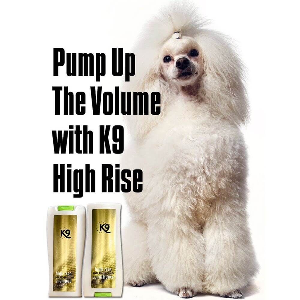 Ett balsam speciellt designat för hundar som bara förtjänar en perfekt pälsdag. Du kan använda detta balsam till vardags och till utställning. Det kommer att ge din hund en päls fylld med volym, lätthet och fukt. K9 High Rise balsam är den perfekta matchen till K9 High Rise Shampoo men kan självklart användas till alla typer av hundtvätt.