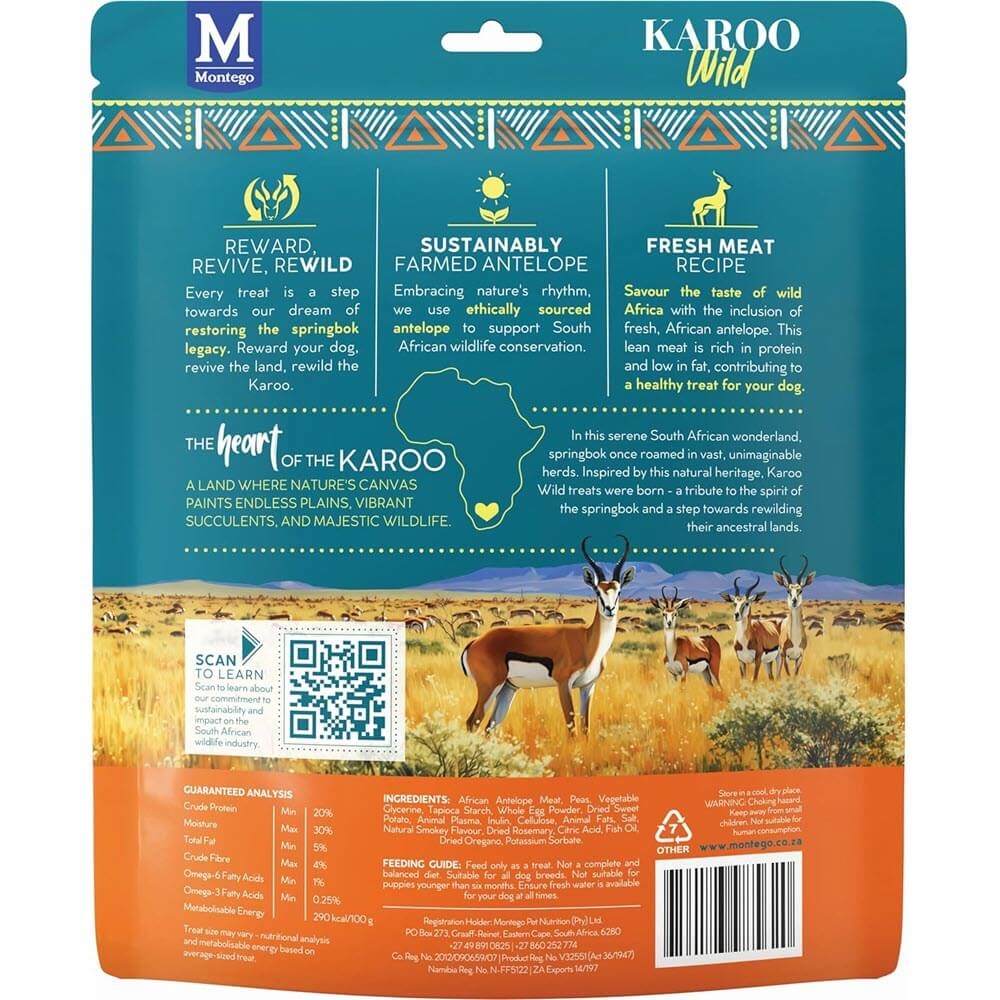 Karoo Wild hundgodis är gjort av antilopkött från Afrika. Ett godis som har låg fetthalt och hög proteinhalt samt en karakteristisk viltsmak som är oemotståndlig för hundar.