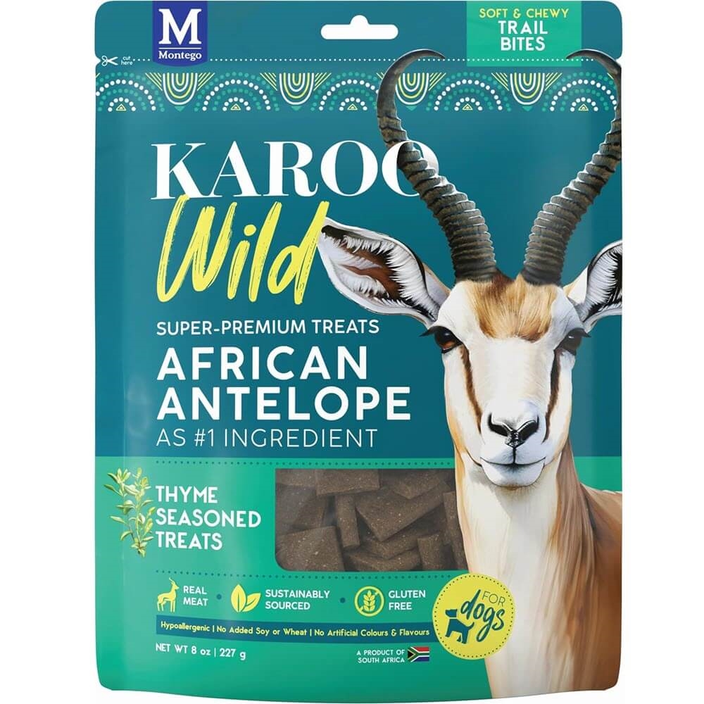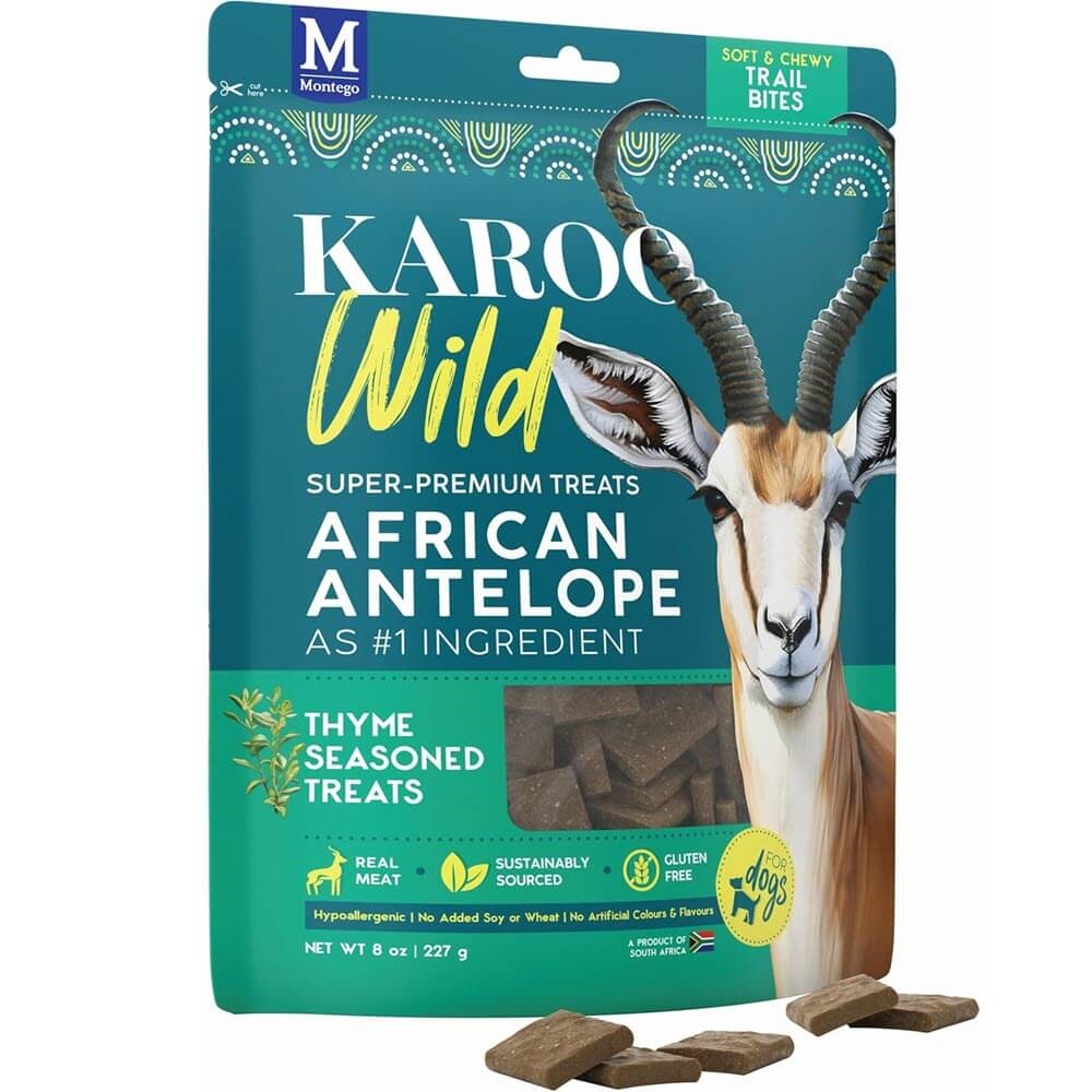 Karoo Wild hundgodis är fritt från spannmål, gluten, soja samt konstgjorda färger och smakämnen. De produceras i små portioner för att bevara de naturliga smakerna och texturerna. Antilopkött visar sig lämpligt för många hundar.
