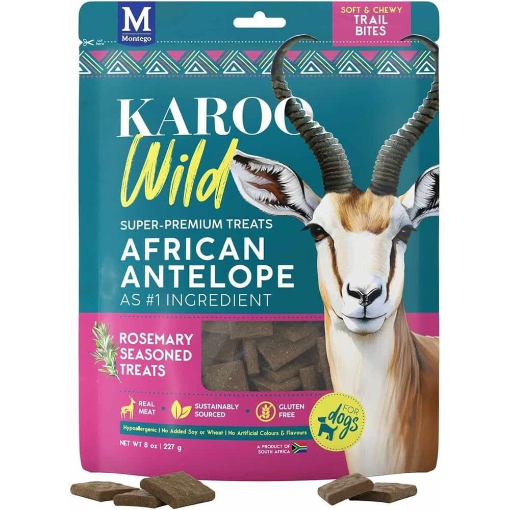 Karoo Wild hundgodis är fritt från spannmål, gluten, soja samt konstgjorda färger och smakämnen. De produceras i små portioner för att bevara de naturliga smaknyanserna och texturerna. Antilopkött visar sig lämpligt för många hundar.