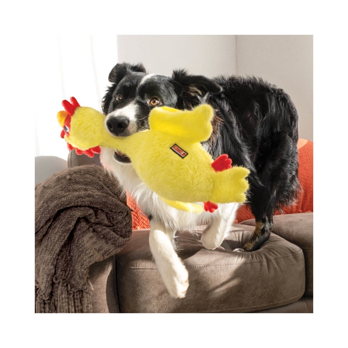 Kong USA har tillverkat ännu en underbar serie av hundleksaker. Här en söt kyckling med lång hals