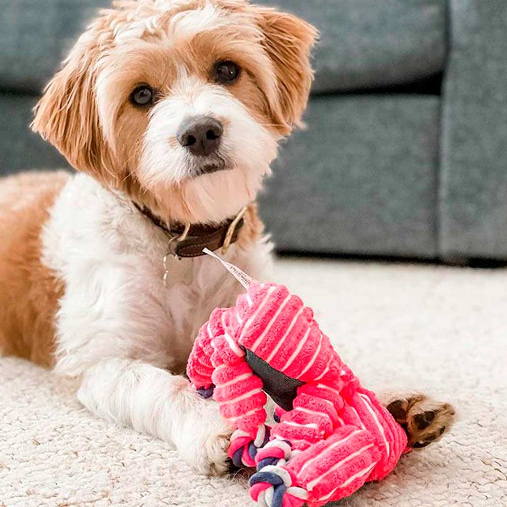KONG Floppy Knots piper för att uppmuntra till lek, och de har mindre fyllning så att skelettet bättre kan kännas av hundarna.