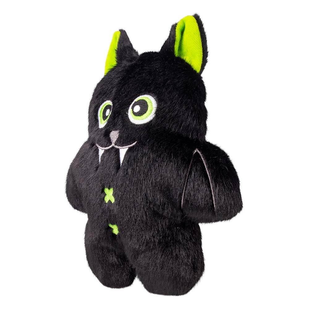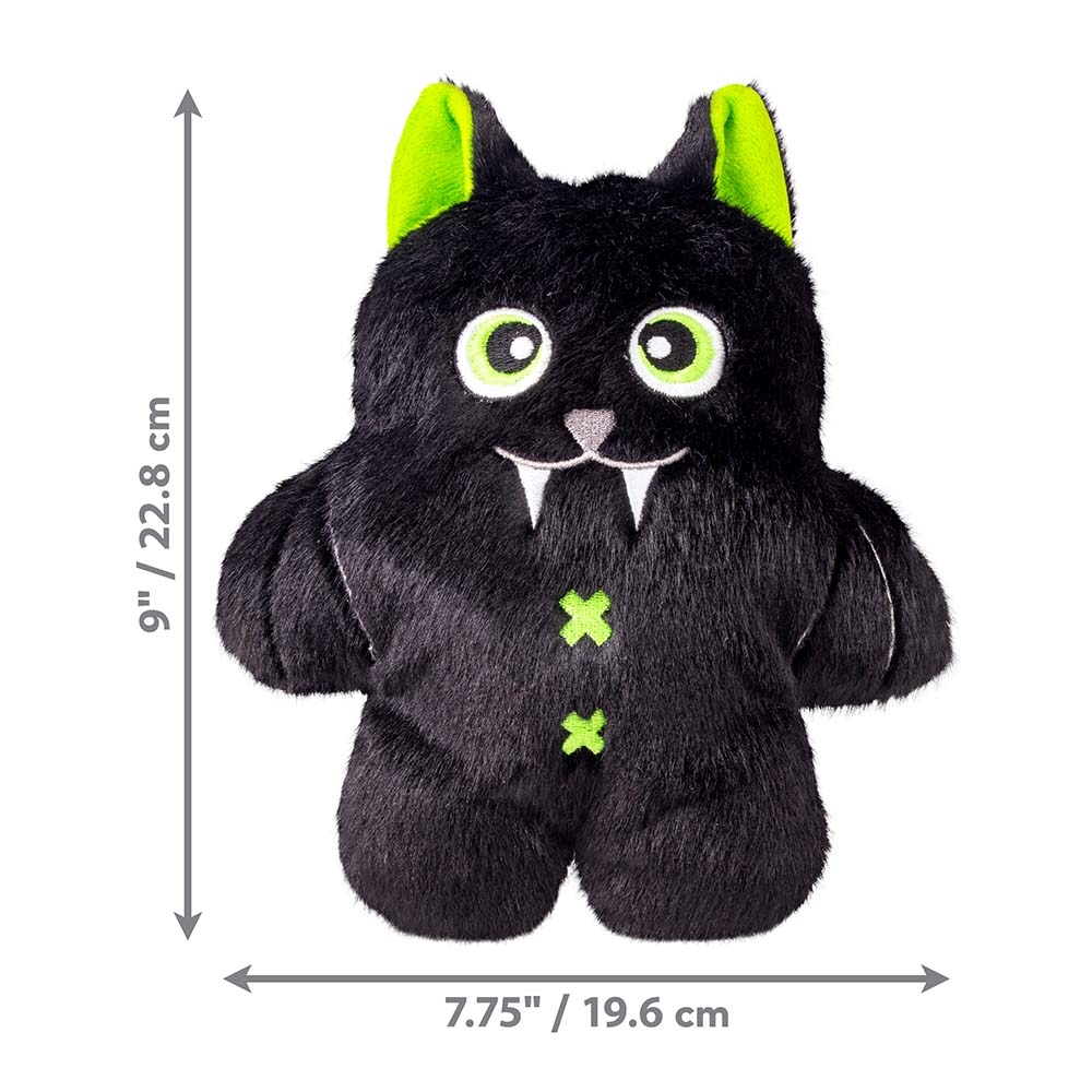 Denna Halloween fladdermusleksak från Kong är tillverkad i mjukt plyschmaterial med inbyggt pip i hela kroppen. Dess platta form gör den lätt att både greppa och bära.