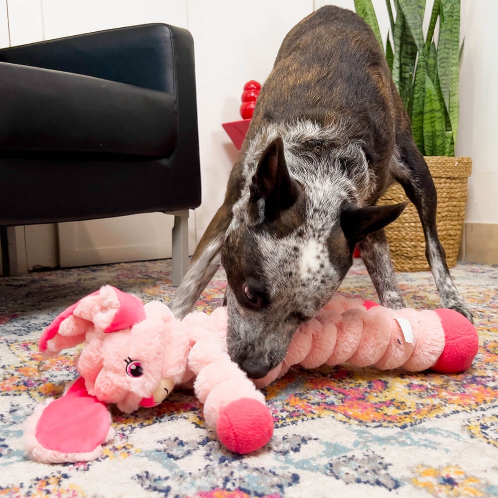 Den ovanligt busiga kaninen är redo för lek. Alla hundar älskar Tuttelu. Stora som små. Denna modell är JUMBO