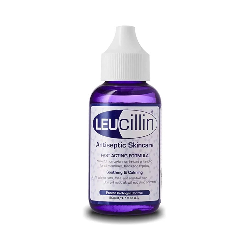 Leucillin kan användas som en helt säker daglig ögontvätt/sköljning, vilket gör det till ett antiseptiskt medel som du kan använda med full tillit när du desinficerar sår, bett, rinnande ögon, illaluktande skägg/öron runt ditt djurs huvud. Det svider inte och fungerar tillsammans med immunsystemet för att främja snabb läkning.