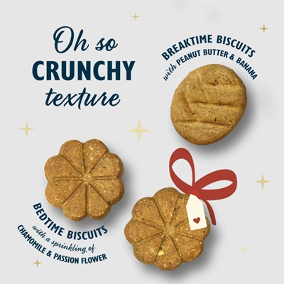 🐾 Varierat utbud – innehåller bl.a. Rise & Shines, Cheese & Apple Training Treats och Bedtime Biscuits.