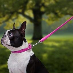 Rosa Hundkoppel Med Chrom Staffordshire Bullterrier Emblem 100 cm
