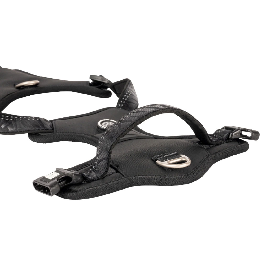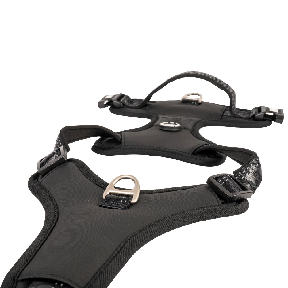 För att uppnå den bästa passformen kan selen justeras vid halsen, bröstet och magen. Den extra ringen på bröstet hjälper dig att hantera din hund om den har en tendens att dra.