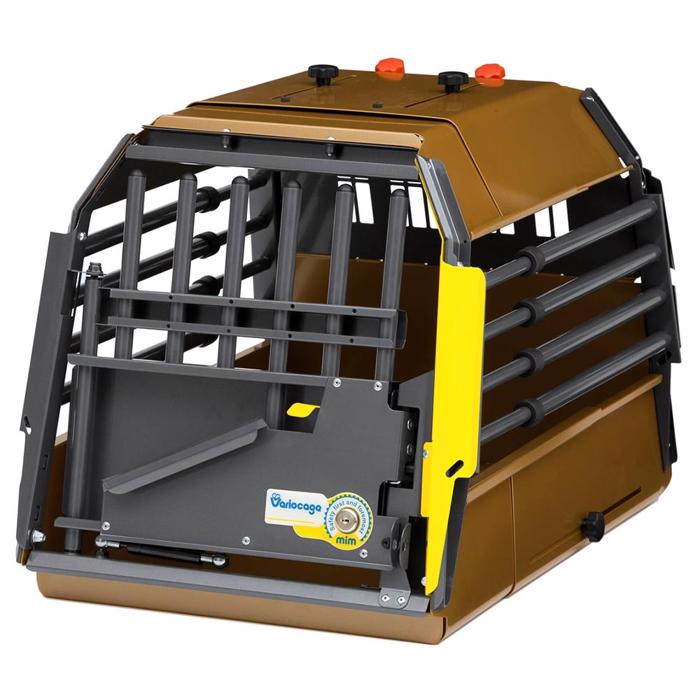 Variocage är tillverkad av pulverlackerat stål och försedd med nyckellås. Den har optimal ventilation och inga utskjutande delar som kan skada hunden. Det medföljer remmar för fastsättning i bilen.