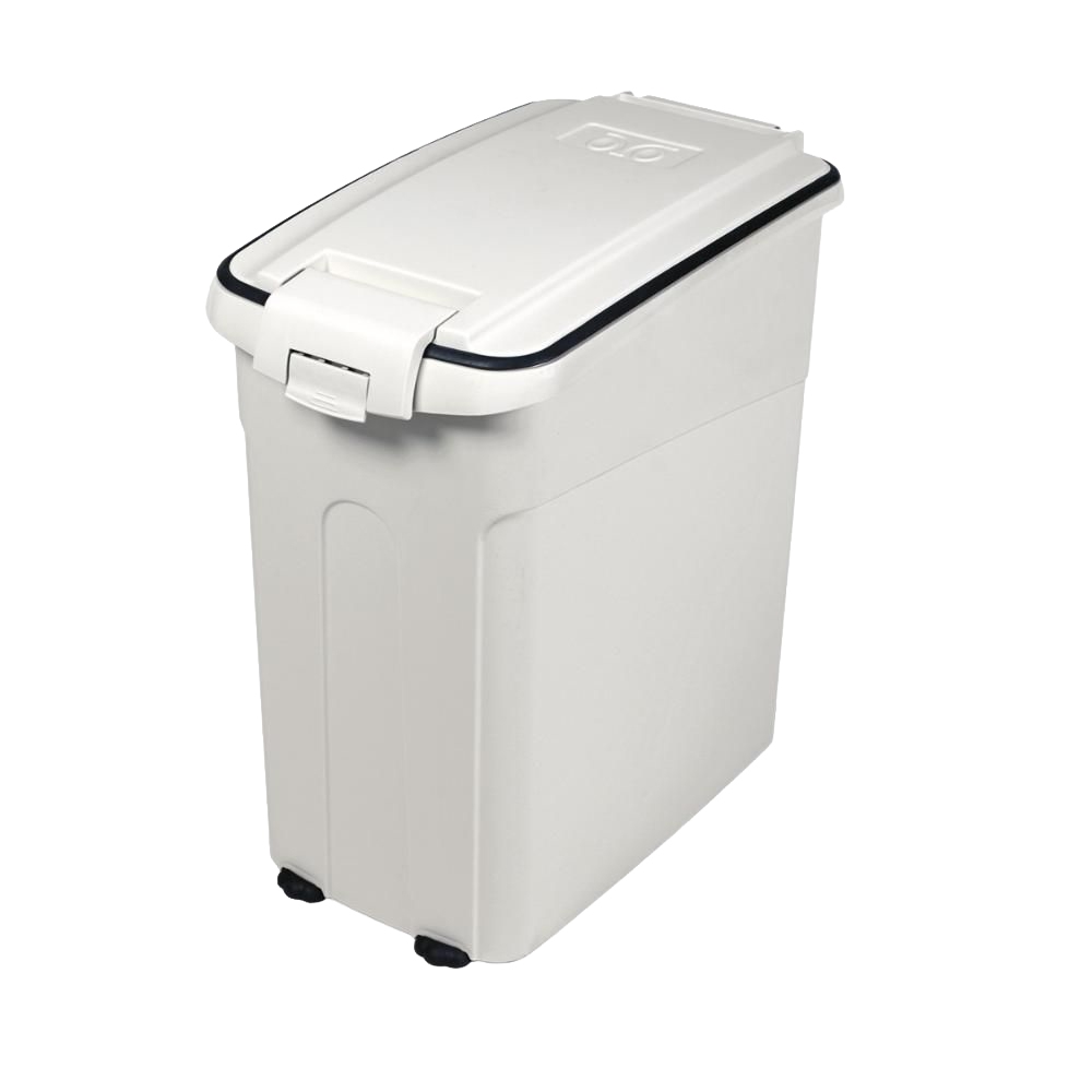 Praktisk och lufttät fodercontainer med integrerad foderskopa - håll ditt torrfoder fräscht och lätt att dosera.