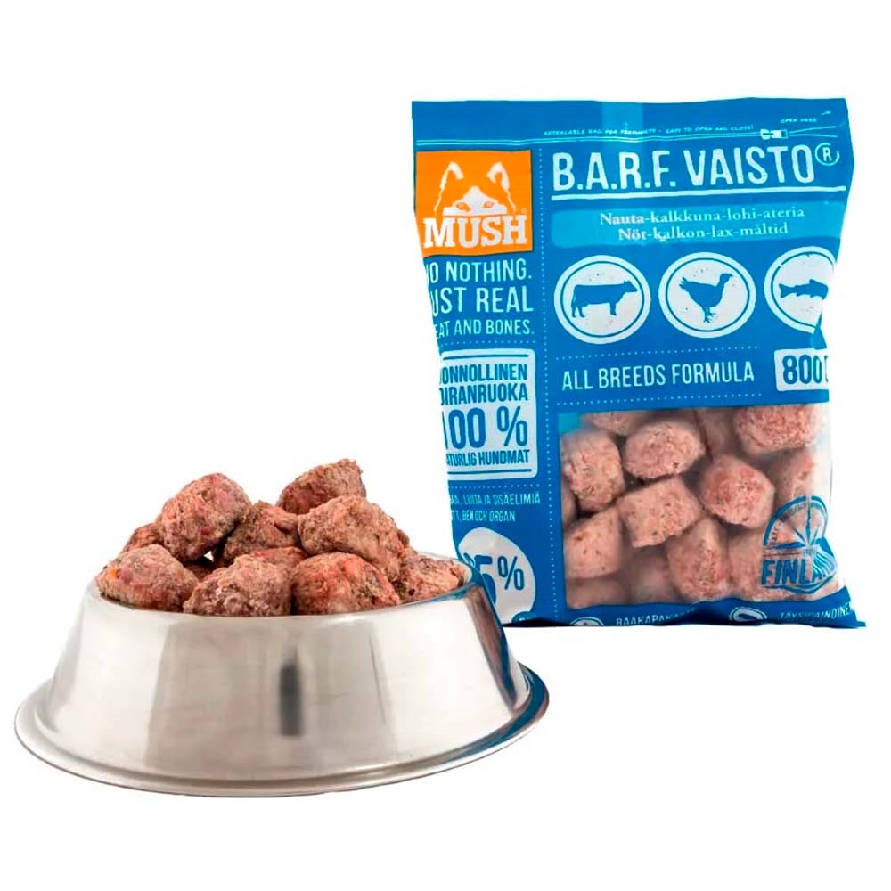 Denna barfblandning innehåller nöt, kalkon och lax.