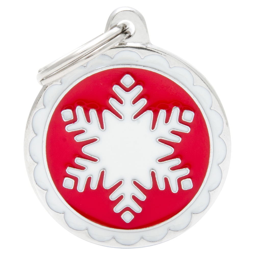 My Family Hundbricka Charms Cirkel Röd med Vitt Snöflinga