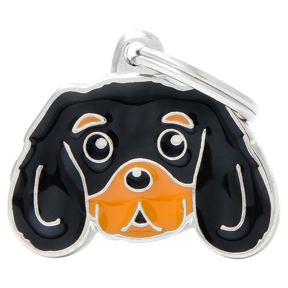 Här får du en kvalitets hundbricka i metall från MyFamily, designad som en cavalier king charles spaniel.
