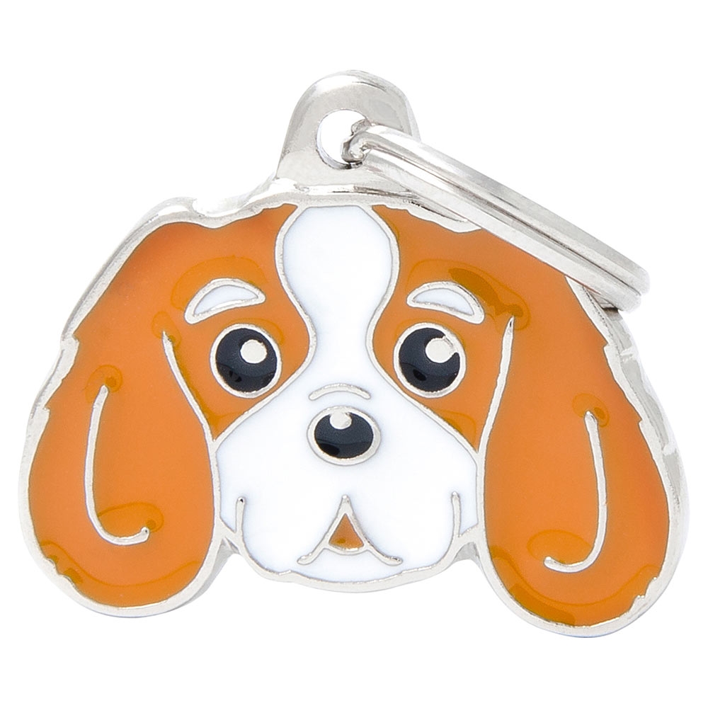 Här får du en kvalitets hundbricka i metall från MyFamily, designad som en cavalier king charles spaniel.