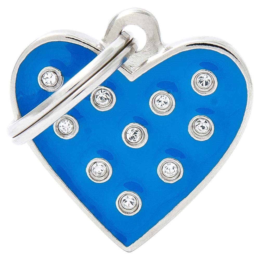 My Family Hundbricka Chic Blått Hjärta med 10 Vita Stenar