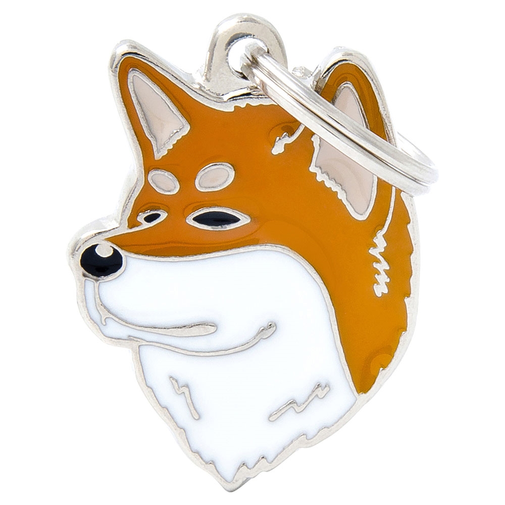 Här får du en kvalitets hundbricka i metall från MyFamily, designad som rasen Akita.