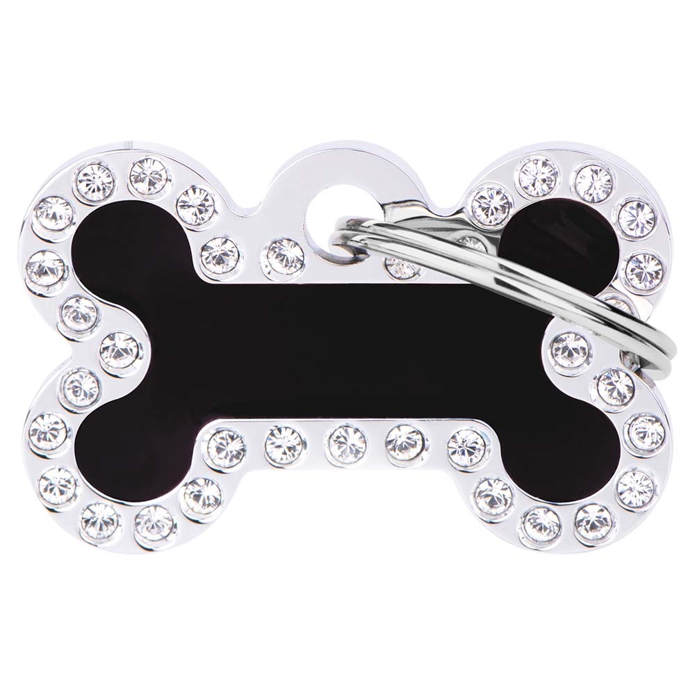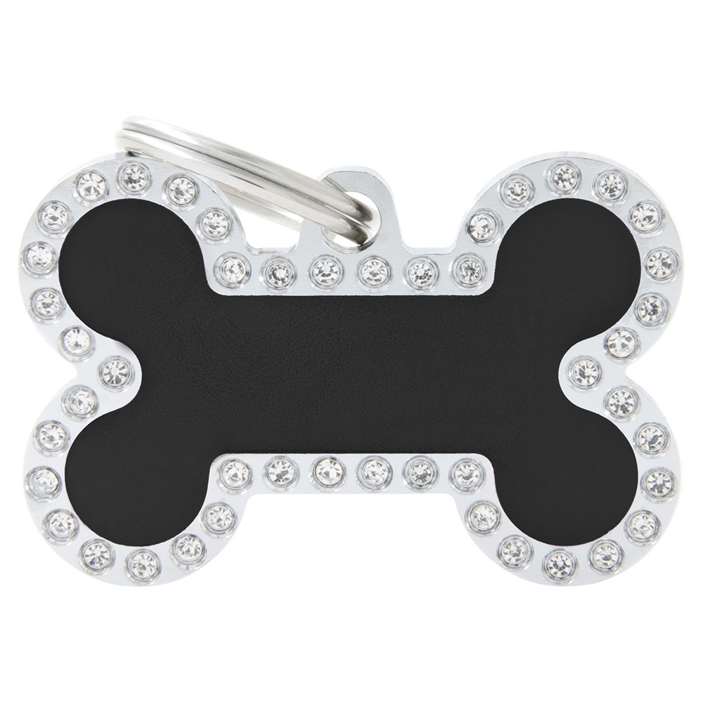 My Family Hundbricka Glam Svart Ben med Silverfärgad Stenkant