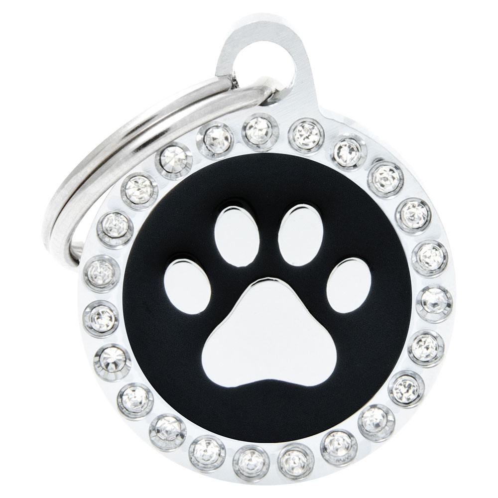 My Family Hundbricka Glam Liten Svart/Silver Cirkel med Tass och Stenar