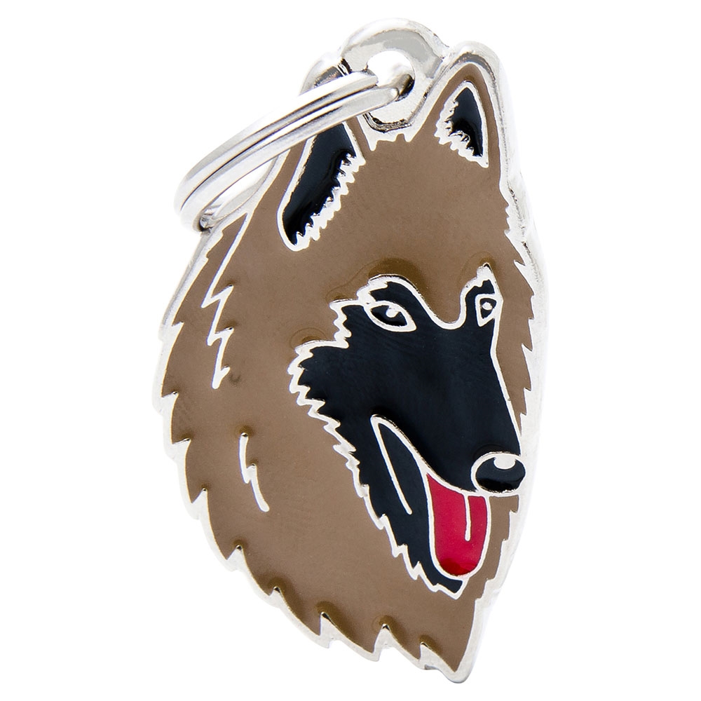 Här får du en kvalitets hundbricka i metall från MyFamily, designad som rasen Belgisk Vallhund.