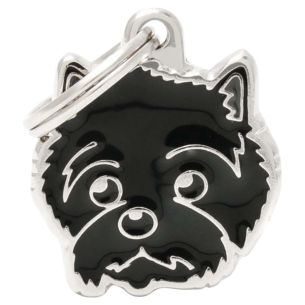 Här får du en kvalitets hundbricka i metall från MyFamily, som är designad som rasen cairn terrier.