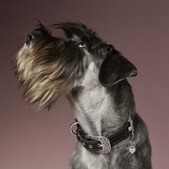 Hundbricka med rashunden Schnauzer. Brickan inkluderar gravering.