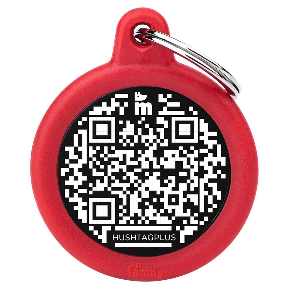 My Family Hundbricka Design Hush Rund Cirkel med QR i Röd