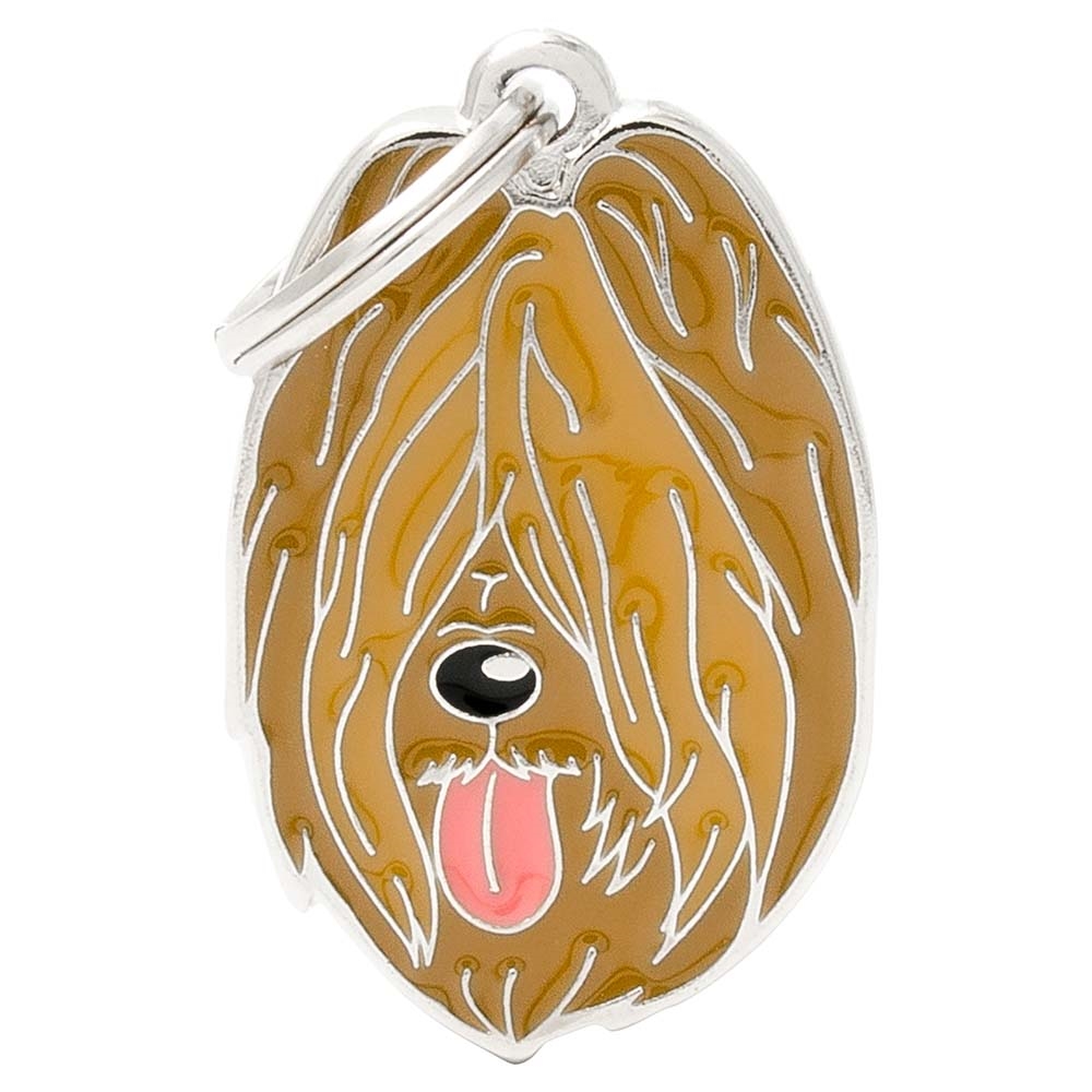 Här får du en hundbricka i metall av hög kvalitet från MyFamily, designad som rasen Briard.