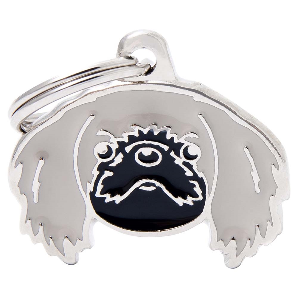 Här får du en hundbricka i metall av hög kvalitet från MyFamily, designad som rasen Pekingeser.