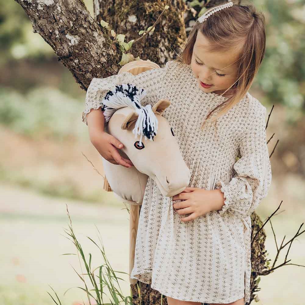 Hoppa upp på hästen och låt fantasin galoppera! My Hobby Horse Junior är en elegant, brun käpphäst som förenar charm och kvalitet i ett. Den mjuka, lyxiga manen inbjuder till kärleksfulla strykningar, medan de vackert broderade ögonen ger Junior ett livligt och naturtroget uttryck.