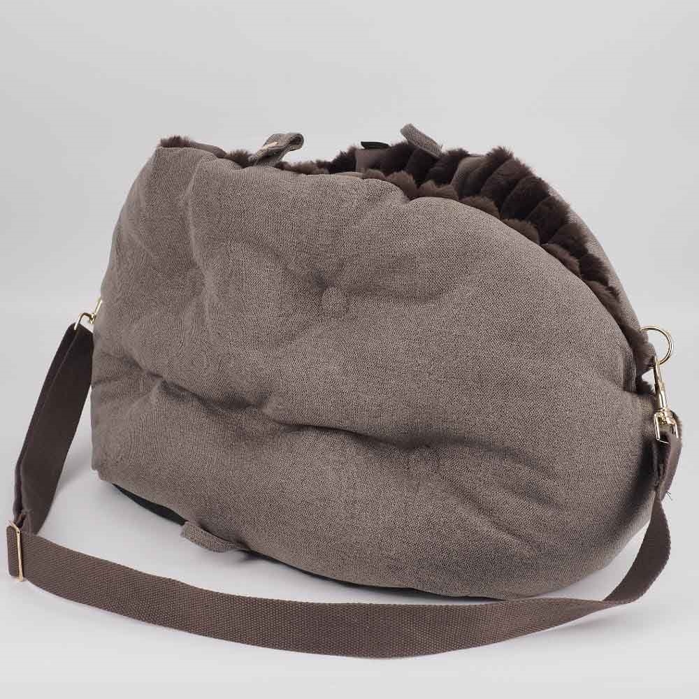 Bärväska för den lilla hunden. Väskan har handtag och avtagbar axelrem. Bara härligt mjuk och skön