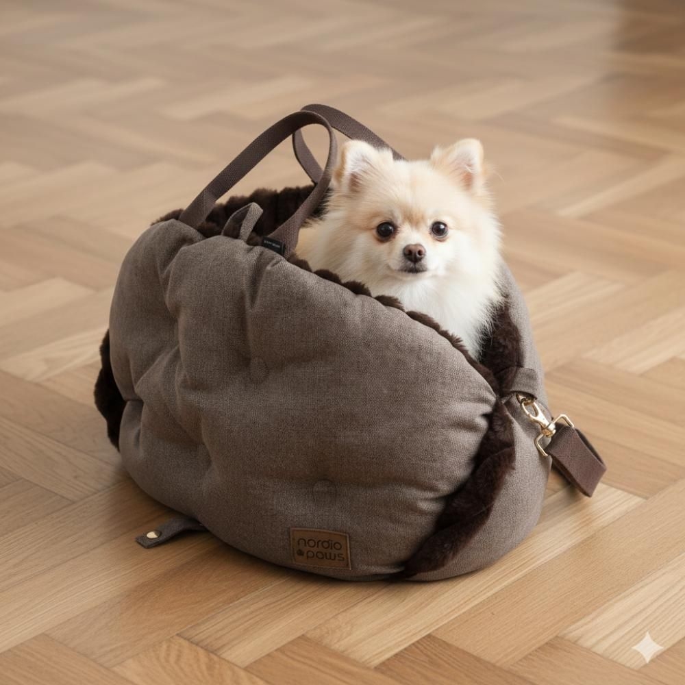 Bärväska Mille av märket Nordic Paws. Elegant och funktionell transportväska för små hundar och katter, designad för både komfort och säkerhet.