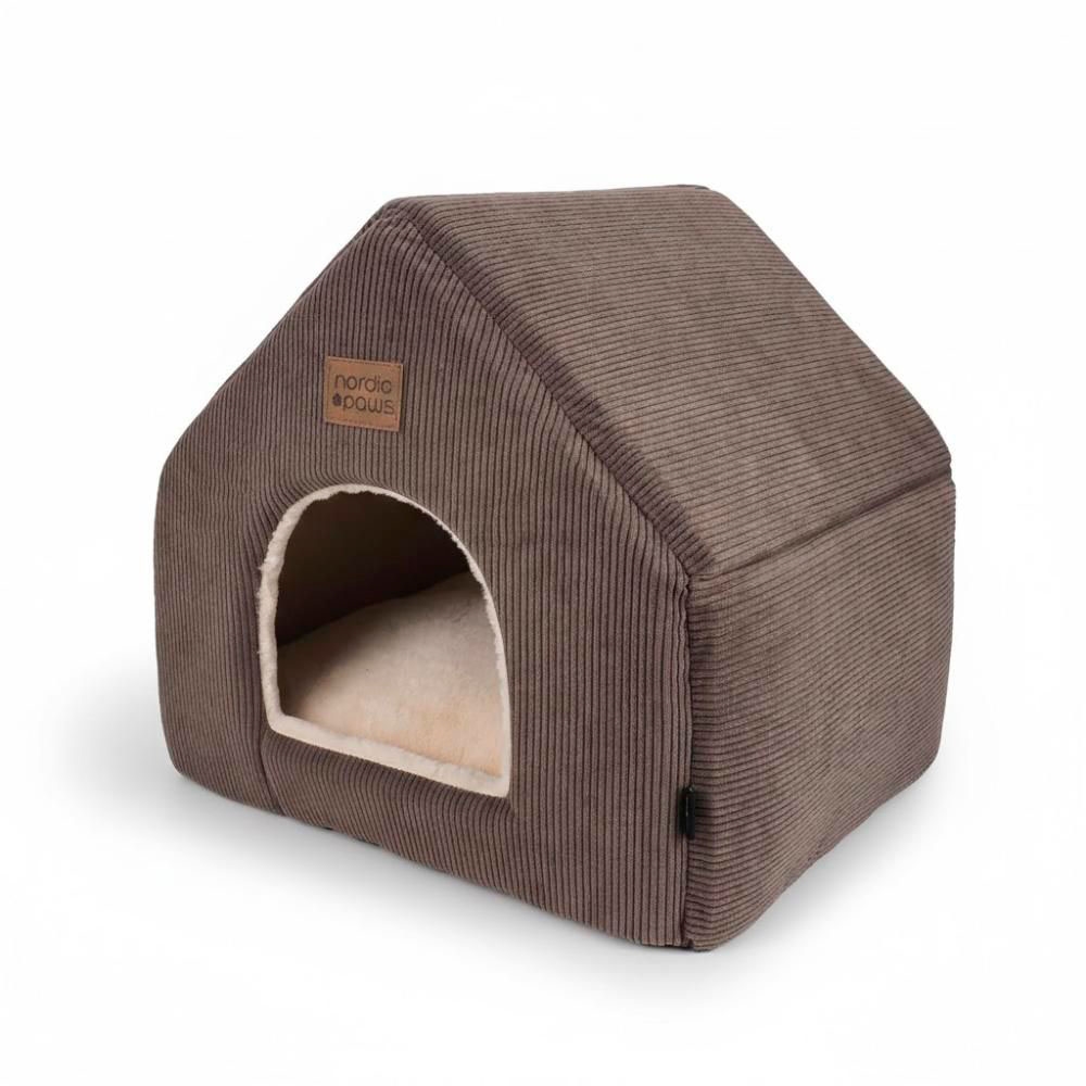 Skapa en lugn fristad i hemmet med denna kattgrotta från Nordic Paws. Den mysiga stugformen ger katten, eller den lilla hunden, en trygg plats att dra sig tillbaka till, medan de mjuka materialen bjuder in till avkoppling och långa tupplurar.