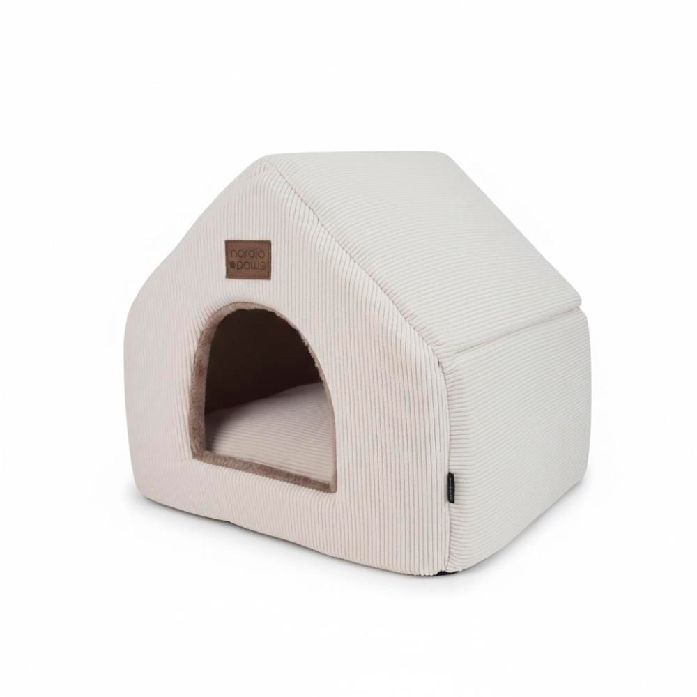 Skapa en lugn fristad i hemmet med denna kattgrotta från Nordic Paws. Den mysiga stugformen ger katten, eller den lilla hunden, en trygg plats att dra sig tillbaka till, medan de mjuka materialen bjuder in till avkoppling och långa tupplurar.
