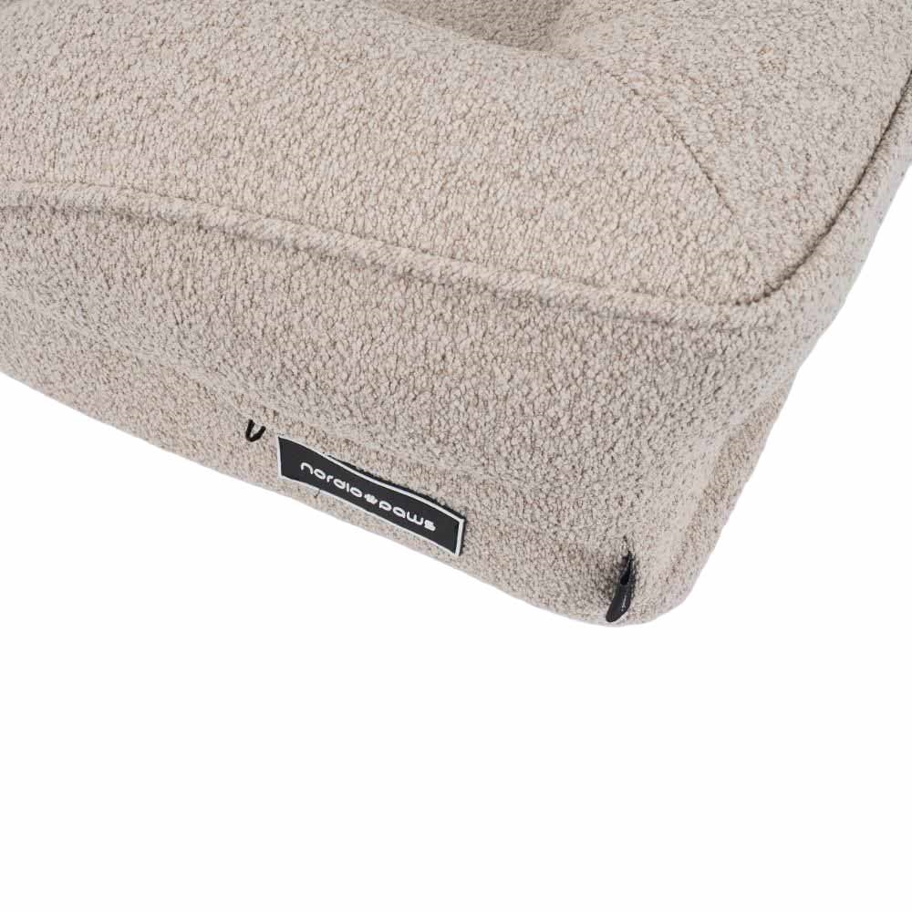 Ge din hund en lugn och bekväm viloplats med denna härliga hundsäng från Nordic Paws. Den är tillverkad i exklusivt bouclé-tyg, som kombinerar modern design med en mysig och mjuk yta som passar perfekt in i hemmet.