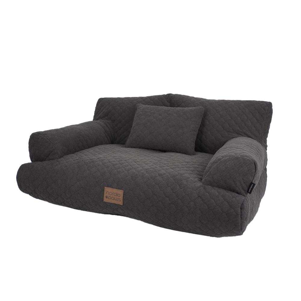 Aska hundsäng av märket Nordic Paws. Stilren och bekväm hundsoffa, designad för att passa in i alla hem. Soffan är tillverkad i quiltat tyg med mjuk stoppning, vilket ger hunden en bekväm och trygg viloplats.